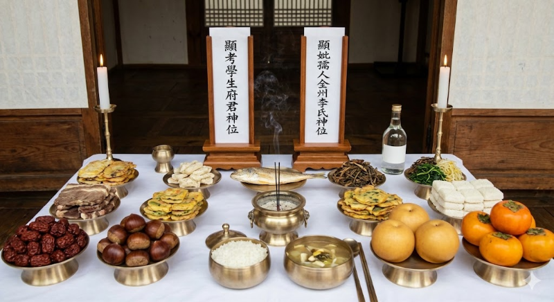 부모님 두분이 모두 돌아가셔서 같이 제사를 지낼 때는 한 종이에 나란히 쓰는 것이 관례입니다. 이때 위치 선정에 주의해야 하는데 제사를 지내는 사람(제주)이 바라봤을 때 왼쪽이 서쪽, 오른쪽이 동쪽이 됩니다. 남자는 왼쪽(서쪽)에 젓고, 여자는 오른쪽(동쪽)에 적는 '남서여동'의 원칙을 따라서 아버지를 왼쪽에 쓰고 어머니를 오른쪽에 배치하여 예법에 맞게 신위를 모시면 됩니다.