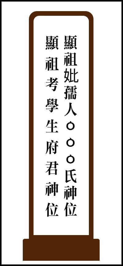 부모님이 돌아가셨을 경우 아버지는 왼쪽에, 어머니는 오른쪽에 적습니다. 만약 두 분 중 한 분만 돌아가셨다면 중앙에 작성하면 됩니다. 아버지를 적을 때는 '현고학생부군신위(顯考學生府君神位)'라고 쓰며 벼슬을 지내지 않은 경우에 학생이라는 칭호를 사용합니다. 어머니는 '현비유인(본관)신위(顯妣孺人(本貫)神位)'라고 적으며 본관에는 밀양 박씨나 김해 김씨 등 성씨의 본관을 넣어 작성하면 됩니다.