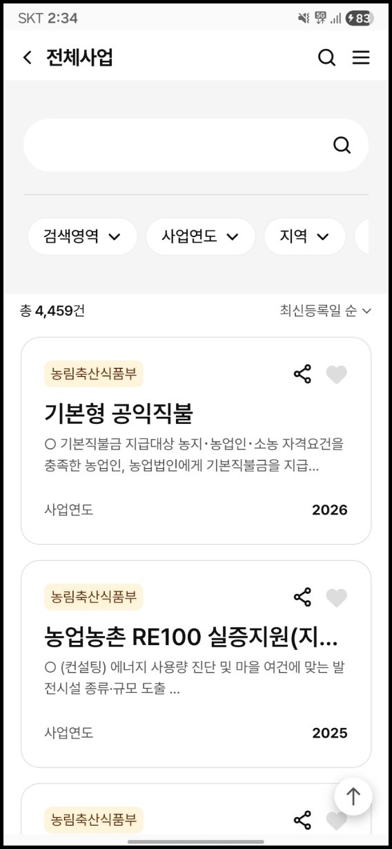 가장 큰 장점은 빅데이터를 분석해 제공하는 맞춤형 보조금 추천 서비스입니다. 나의 농업경영체 등록 정보를 바탕으로 현재 신청 가능한 지원 사업을 자동으로 선별해 알려줍니다. 일일이 공고를 찾아다닐 필요 없이 농업이지앱(어플) 알림을 통해 신청 기간을 놓치지 않고 챙기며 농가 소득 증대에 도움을 받습니다.