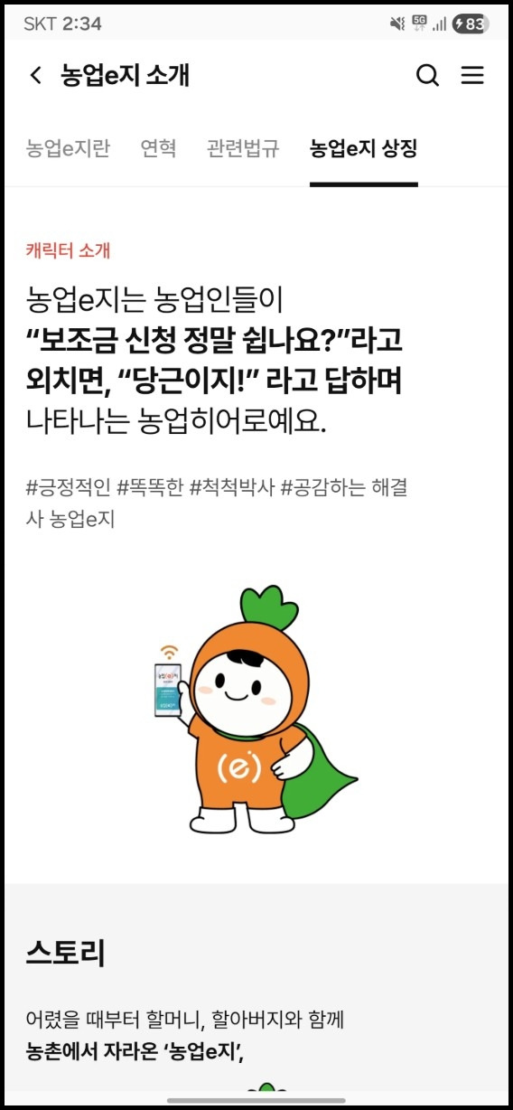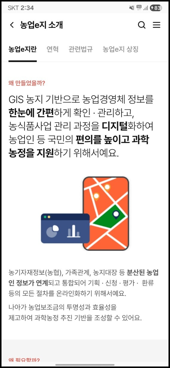 농업이지는 농림축산식품부에서 운영하는 차세대 통합 정보 플랫폼입니다. 기존에 관공서를 직접 방문해야 했던 번거로움을 없애고 스마트폰으로 간편하게 행정 업무를 처리하도록 돕습니다. 시공간 제약 없이 나에게 필요한 농정 지원 정보를 실시간으로 확인하므로 효율적인 영농 활동이 가능합니다.