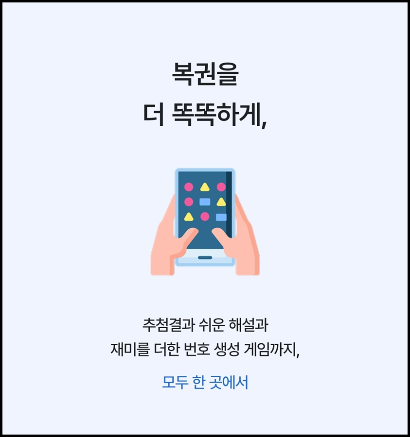 다만 모바일 슬립지를 미리 작성하여 판매점에 방문 후 미리 작성한 슬립지 QR코드를 통해 로또 구매를 할 수 있고, 추첨 결과 해설들과 번호생성 게임같은걸 할 수 있습니다.