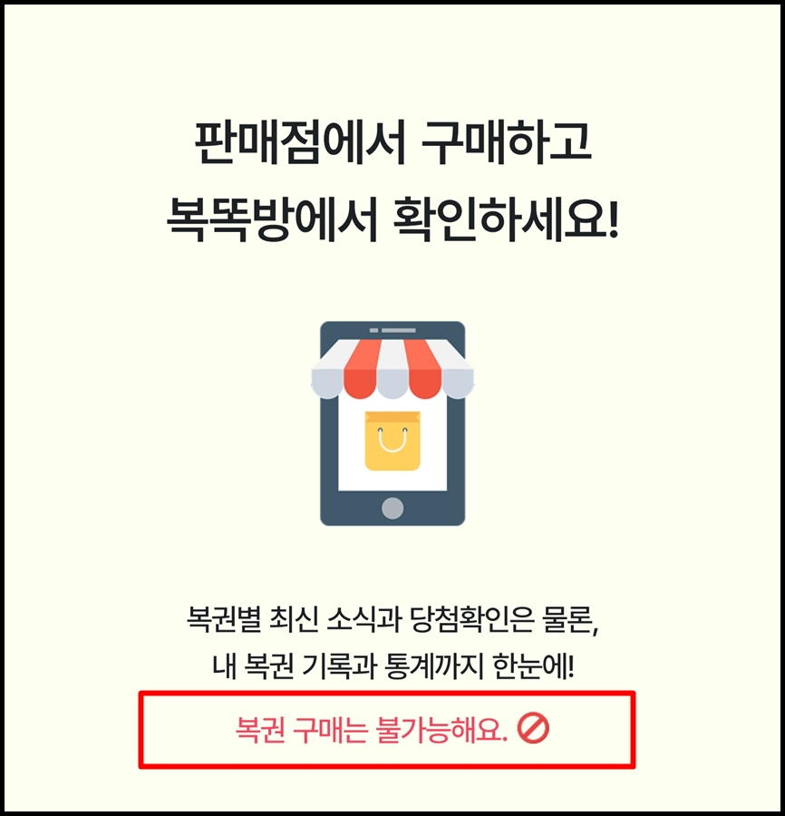 실제로 동행복권 공식 어플인 복똑방을 설치하는 과정에서도 복권 구매는 불가능하다고 안내하고 있습니다.