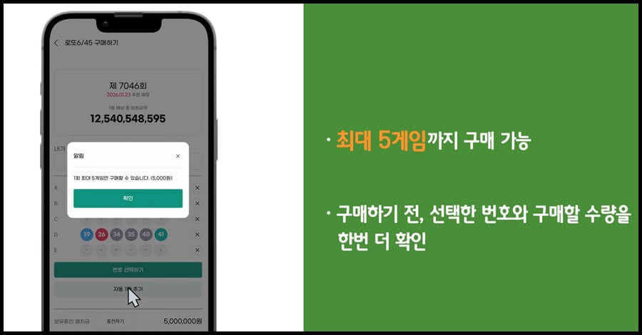 다만 동행복권 온라인 구매는 한도가 5천원으로 엄격하게 제한되으며 평일 구매만 가능하다는 점도 인지하고 있어야 합니다.